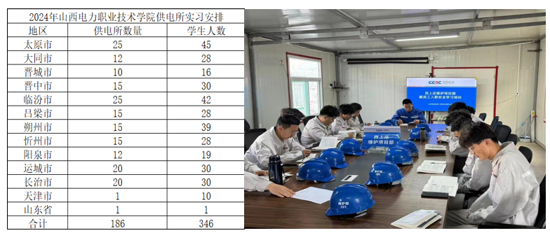 2.打造供電所實習網絡。學院充分發(fā)揮電力行業(yè)辦學優(yōu)勢,主動爭取省電力公司的政策支持,與西藏公司、朔州公司等重點企業(yè)共建產教融合實踐基地,構建了覆蓋全省200余個基層供電所和國網客服中心(北中心)的實習基地。學生在3—4個月的實習過程中,深入電力生產一線,在設備巡檢、電力運維、客戶服務等方面掌握了多項實用技能。2024年累計向系統(tǒng)內一線崗位輸送346名實習生,大幅提升了學生的實踐動手能力。