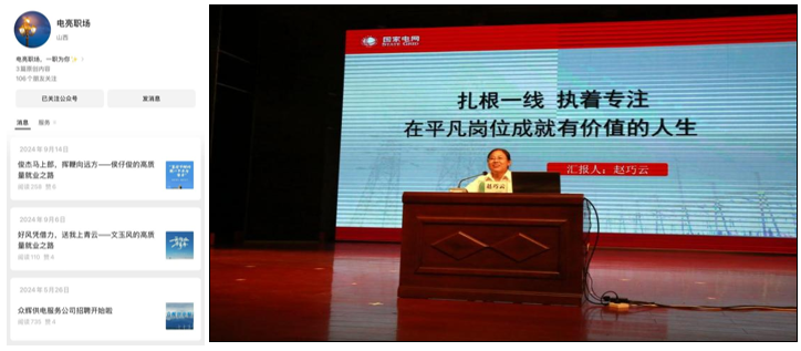 圖9:“電亮職場”公眾號及優(yōu)秀校友趙巧云回校分享