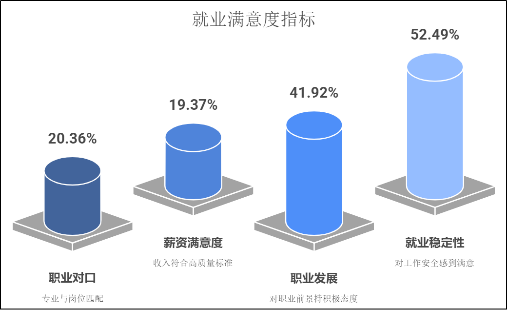 圖1:高質量就業(yè)滿意度(數據來源:對近兩年就業(yè)的1002名學生調研)