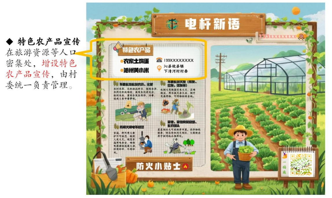 “電桿新語”建設(shè)與“一村一品牌一文化”的鄉(xiāng)村文化建設(shè)深度融合,助推鄉(xiāng)村振興再上臺階。下清河村試點實施后,解決了電桿被亂涂亂畫、張貼小廣告等影響鄉(xiāng)村美觀的問題,提升了鄉(xiāng)村環(huán)境整潔度;為村民提供便捷的大棚種植知識獲取通道,提升村民大棚種植積極性,2024年種植大棚達(dá)到50余個,人均收入達(dá)到8000元以上。同時,派出所、消防大隊通過宣傳,杜絕了該村村民被詐騙,增強了村民安全意識。