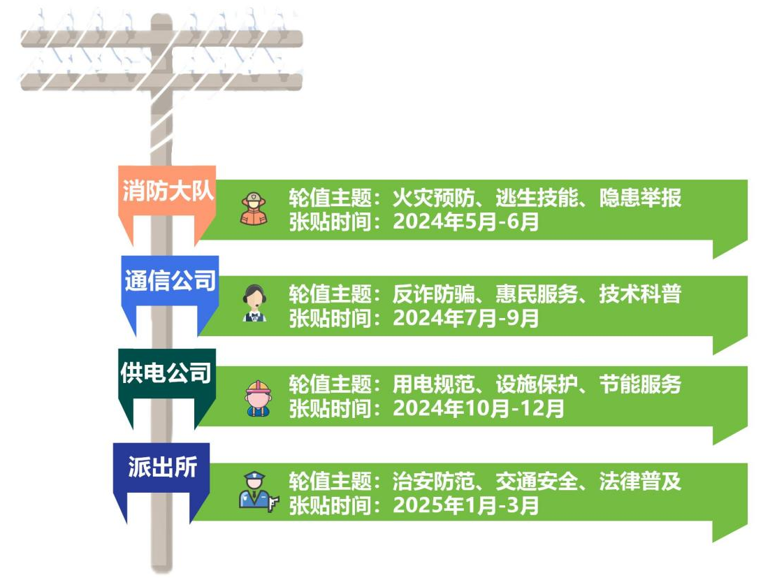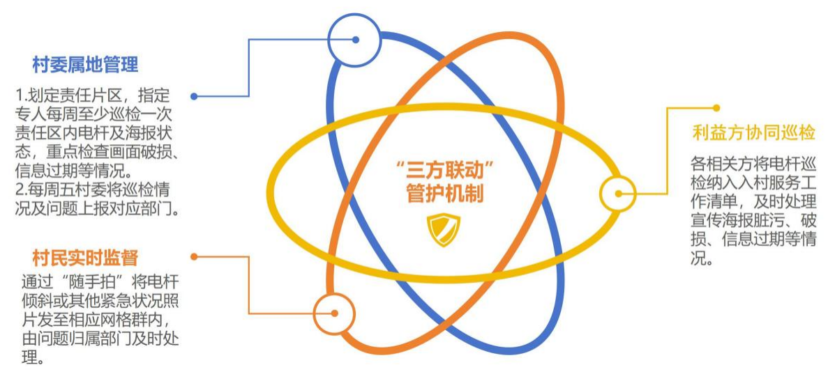 3.利益方協(xié)同巡檢。利益相關(guān)方將電桿巡檢納入入村服務(wù)工作清單,及時處理宣傳海報臟污、破損、信息過期等情況。