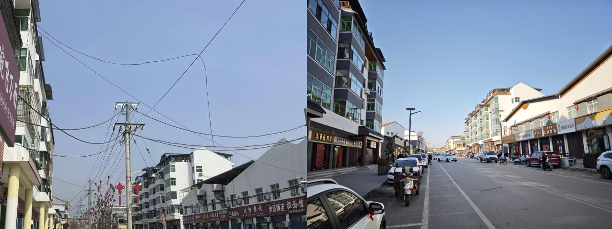 3.融電于景。在尉遲、竇莊、郭壁等景區(qū)村落,注重與旅游景區(qū)、生態(tài)環(huán)境等專項(xiàng)規(guī)劃銜接配套,秉承“變臺(tái)精心選點(diǎn)、設(shè)備景觀融合,走線簡(jiǎn)潔美觀”理念,在特色產(chǎn)業(yè)帶、鄉(xiāng)宿集聚區(qū)避電于景、藏電于景、融電于景,完成2條10千伏線路入地,5條0.4千伏線路改造,35基舊桿拆除,實(shí)現(xiàn)“望眼不見(jiàn)線、盡是村落景”,大幅減少線路整治工作的阻力。