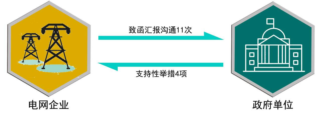轉(zhuǎn)變以往單打獨(dú)斗的固有工作方式,識(shí)別農(nóng)村配電規(guī)劃建設(shè)有關(guān)的利益相關(guān)方,分析其訴求、資源優(yōu)勢(shì),充分考慮其合理建議、期望和訴求,找到各方利益相關(guān)方的聯(lián)結(jié)點(diǎn),形成“政府主導(dǎo)、供電公司推動(dòng)、水氣暖訊企業(yè)協(xié)同配合、客戶受益、多方共贏”的推進(jìn)模式。