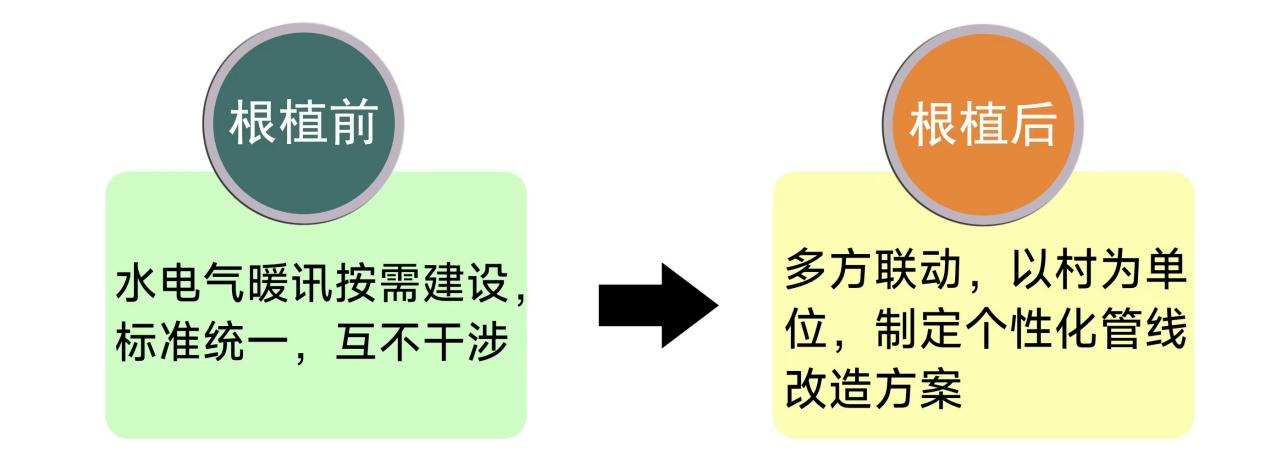 通過(guò)根植項(xiàng)目開(kāi)展,政府“千萬(wàn)工程”重點(diǎn)項(xiàng)目高質(zhì)量落地,在預(yù)期時(shí)間內(nèi)完成全部工作任務(wù)。公司農(nóng)村電網(wǎng)改造效率大幅提高,在7個(gè)村實(shí)現(xiàn)高壓線路不進(jìn)村,低壓線路全入地,最大限度降低管線外露帶來(lái)的安全隱患,為村民安全用電提供堅(jiān)強(qiáng)的保障。對(duì)水電氣暖訊企業(yè)來(lái)說(shuō),通信線路、進(jìn)戶線實(shí)現(xiàn)全入槽,維修率大幅下降,為其節(jié)約了建設(shè)運(yùn)維成本,管線覆蓋率達(dá)到100%,獲得更多潛在客戶。對(duì)村委來(lái)說(shuō),農(nóng)村面貌煥然一新,農(nóng)村政務(wù)服務(wù)水平全方位提高,鄉(xiāng)村人居環(huán)境更加宜居,村民生活品質(zhì)得到大大提升,人民有了更多幸福感。