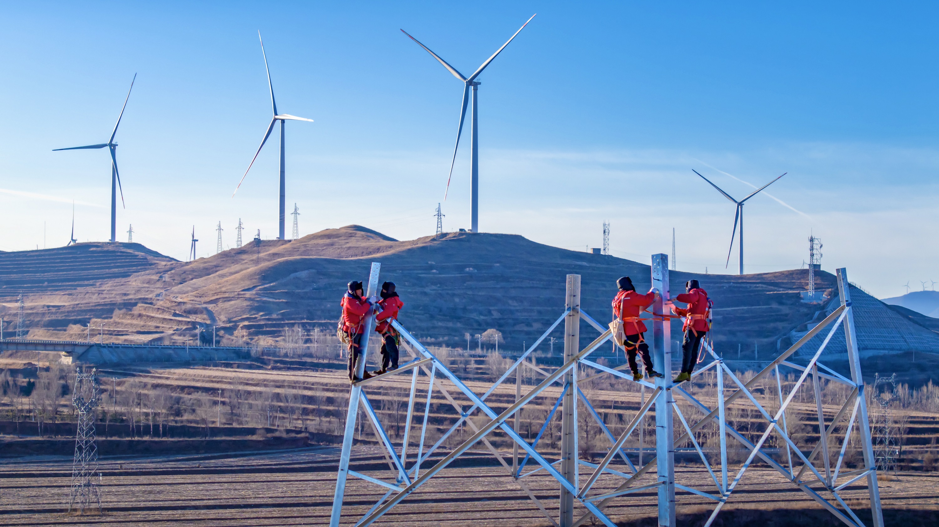 國(guó)網(wǎng)山西送變電公司施工人員正在500千伏忻州北-陽(yáng)泉輸電線路工程現(xiàn)場(chǎng)開展組塔作業(yè),實(shí)現(xiàn)工程建設(shè)和生態(tài)保護(hù)協(xié)同并進(jìn)。
